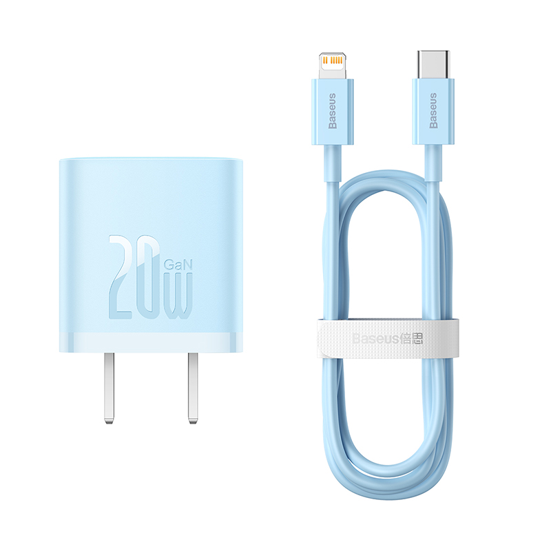 Baseus Charger 20W For Apple Iphone 14 13 12 11 Series GaN5 Fast Charger 1C CN Set Black Type-C to iP PD 20W 1m Cable Sierra Blue CCGN040103