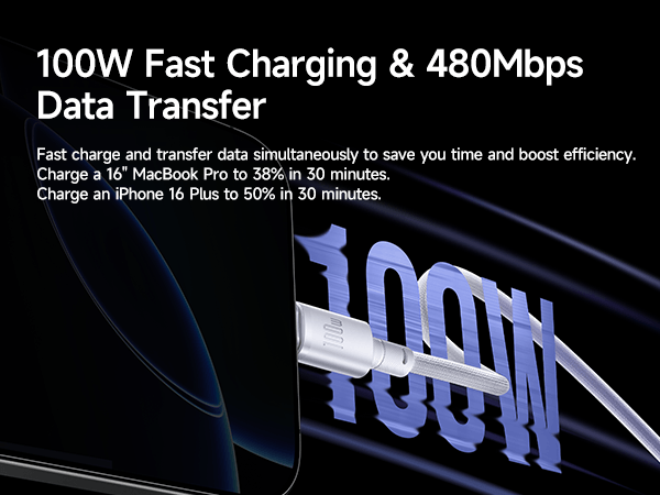 Baseus New Braided Fast Charging Cable Type-c to Type-c 100W for Macbook Samsung Iphone 15 16 17 series Pixel 1m Cosmic Black E0426W00