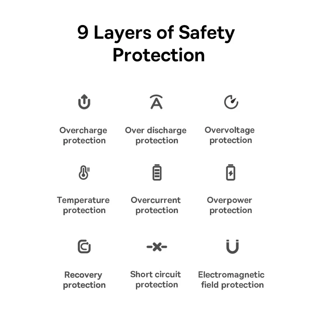 • USB-A output: 5V⎓3A; 9V⎓2A; 12⎓1.5A; 10V⎓2.25A;