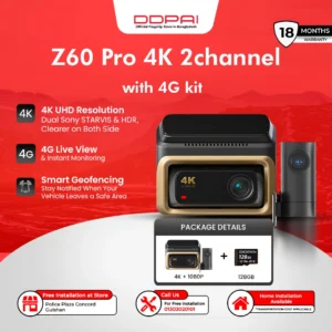DDPAI Dash Camera 4G Z60 Pro 4K 2 Channel Front & Back WIth 4G Parking kit 32GB Built-in Memory With 128Gb -18 Months Warranty