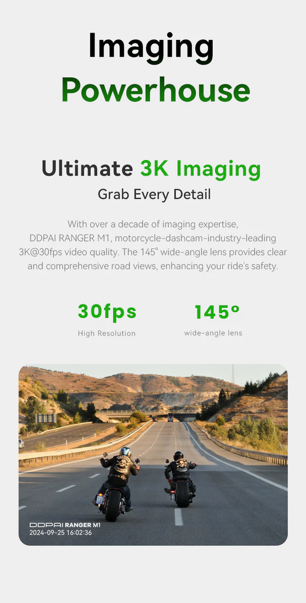 - 3K Resolution: Industry-leading 3K@30fps video quality with a 145° wide-angle lens for clear and comprehensive road views.