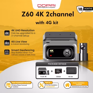 DDPAI Dash Camera 4G Z60 Pro 4K 2 Channel Front & Back WIth 4G Parking kit 32GB Built-in Memory With 128Gb -18 Months Warranty