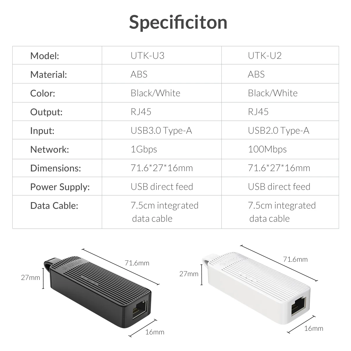 Orico Lan Adapter USB To Gigabit Ethernet Adapter For laptop Macbook notebook UTK-U3
