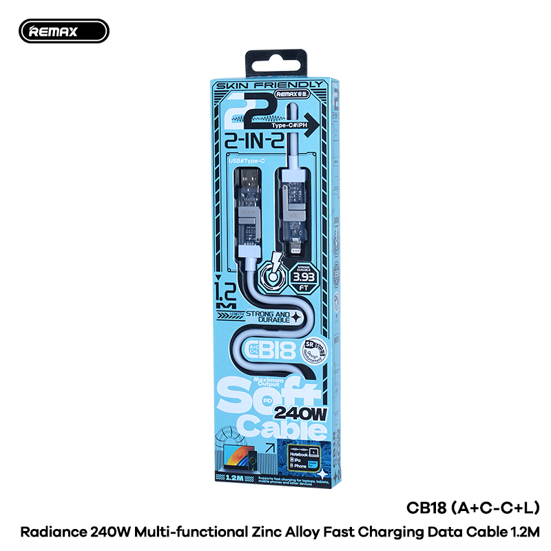 The REMAX CB18 Cable is a versatile charging and data-transfer cable designed for modern smartphones and devices. With a USB-C connector on one end and compatibility for iPhone (Lightning) or USB-C on the other — depending on the variant — it offers flexibility whether you use iOS or USB-C devices. This makes CB18 a practical choice for users who juggle multiple devices: for instance, an Android phone and an iPhone, or a tablet plus a phone.