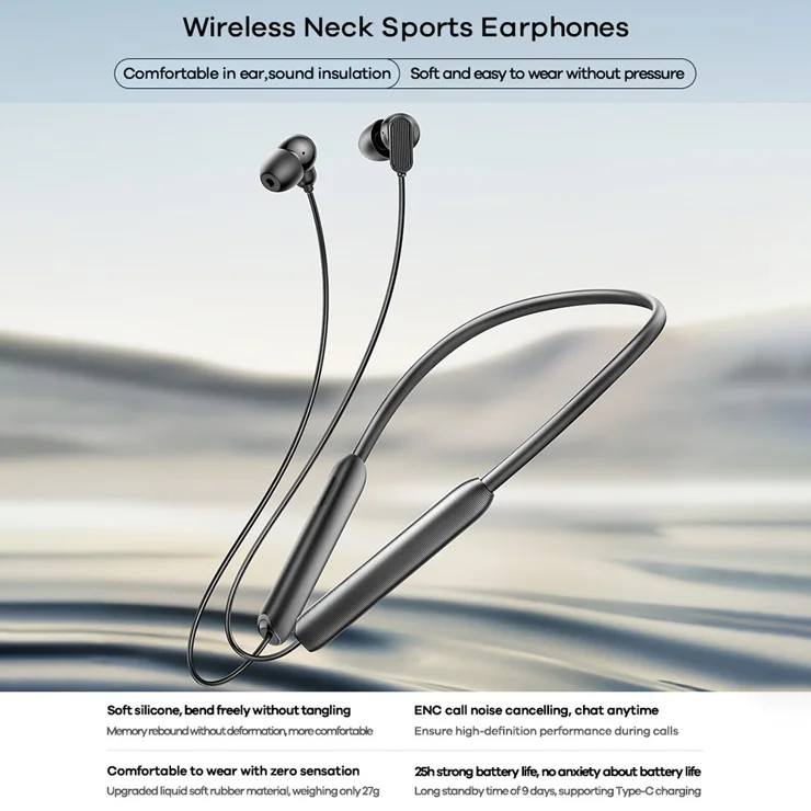 - Flexible silicone neckband with memory rebound design for comfortable, tangle‑free wear.